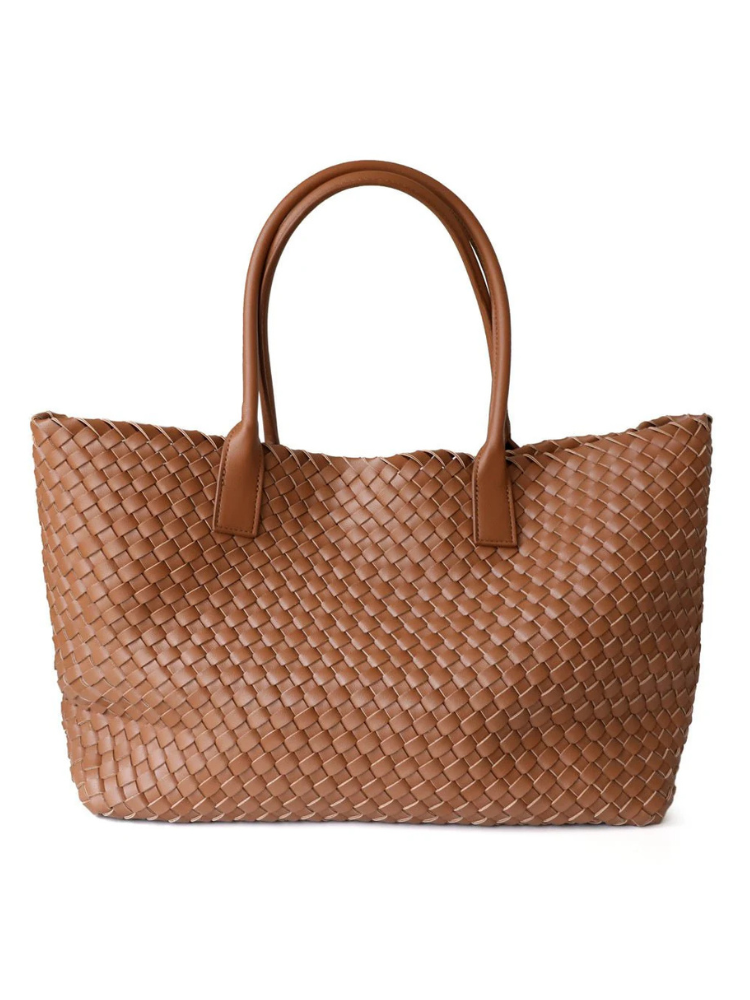 Tan Woven Leather Tote Bag – Large Shoulder Handbag
